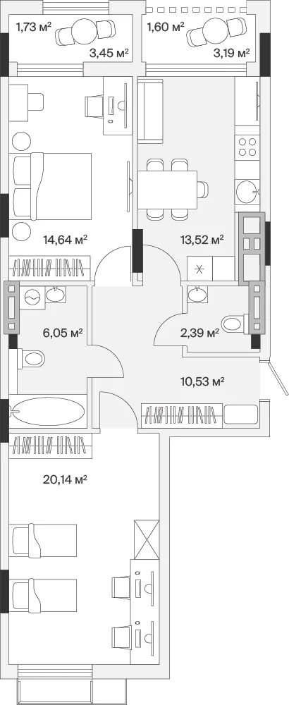 2-комнатная  72.94 м2