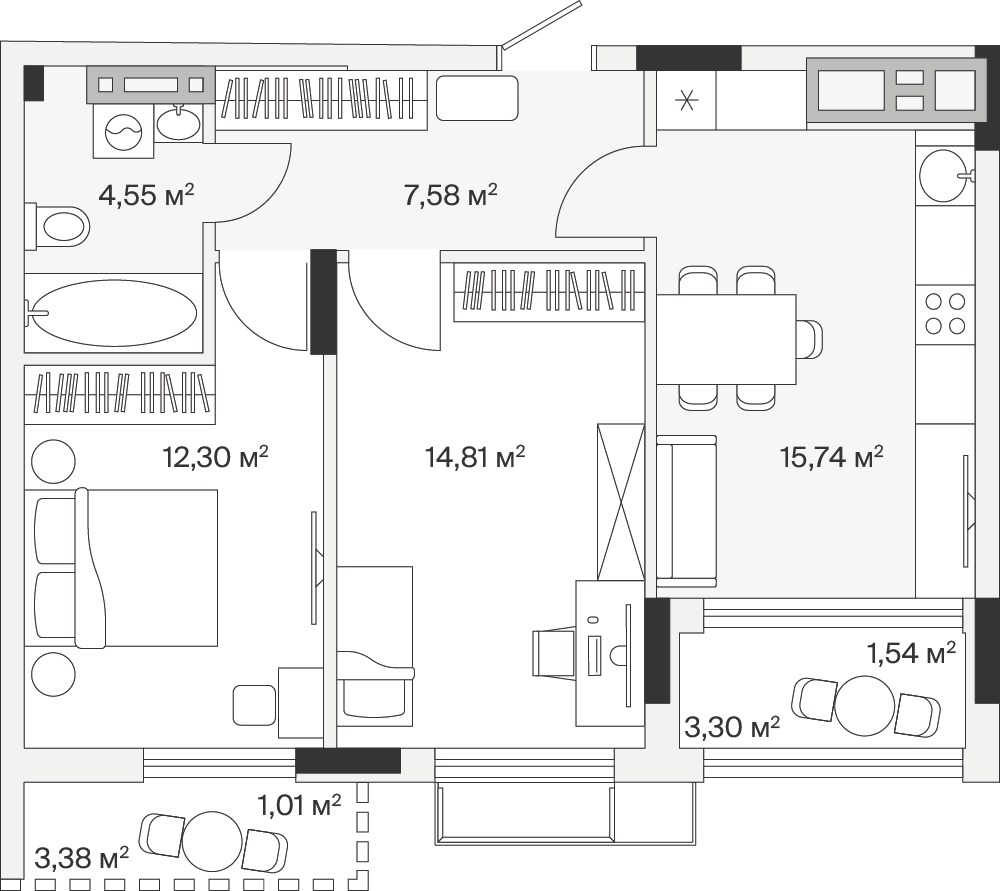 2-комнатная  62.16 м2